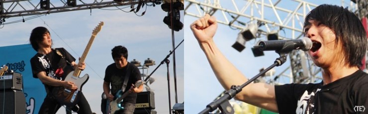 이미 일본에서 국민밴드가 된 포스트록밴드로, 격렬하면서도 서정적인 멜로디가 특징. 열정적인 퍼포먼스와 무대매너로 관객들의 호응을 끌어올렸다. 열심히 하는 모습이 아름다웠다는. [물 건너 온 고수]의 뜨거운 무대!