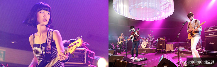 멘붕의 상태라서 일단 맥주부터 마시고, 어둠을 찾아 실내공연장 White Moon Lounge로 이동했다. 바이바이배드맨(Bye Bye Badman) [베이스 이루리, 드럼 정한솔, 건반 고형석, 보컬 정봉길, 기타 곽민혁]의 무대. 지난번 홍대클럽에서 봤으니, 두번째 보는 셈이다. 바이바이배드맨은 나와 동명의 베이스 이루리가 있어 왠지 친근하다. 미모의 여성 베이시스트가 있는 밴드는 남성 팬들의 지지도 많이 받는데, BBB도 예외는 아니었다. 이루리 사진 좀 많이 찍어달라는 형제들의 요청이 쇄도했으니 말이다.